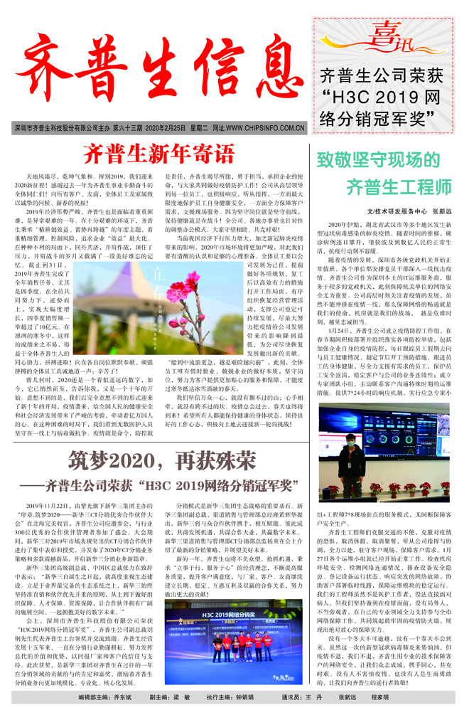 筑夢2020,再獲殊榮 ——齊普生公司榮獲“H3C2019網絡分銷冠軍獎”